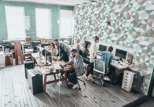 Image that shows the group of people working in a room.Choose Unconventional Interiors